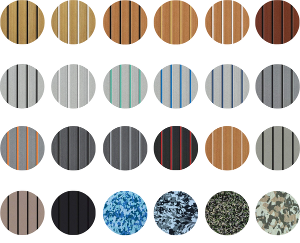 GripTek Marine Decking™ offers a range of vibrant and stylish color options to suit every boat owner's preferences and aesthetic vision. With our two-color material option, you can choose from a selection of complementary hues to create a sleek and modern look for your boat deck. For those seeking even more customization, our three-color material option provides the opportunity to mix and match colors, allowing for unique and eye-catching designs that truly stand out on the water. Whether you prefer a classic combination or a bold statement, GripTek Marine Decking™ ensures your boat deck reflects your individual style while maintaining the high performance and durability expected in marine environments.